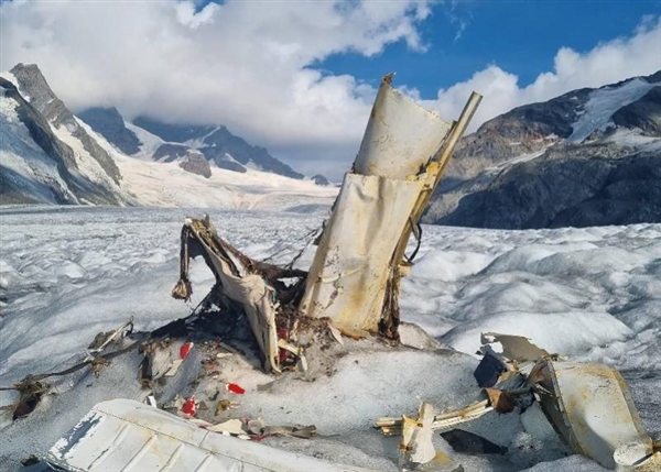 这无疑是一次重大的新发现,8月4日,一名登山向导在瑞士瓦莱州Fieschertal市少女峰冰川和Konkordiaplatz冰川汇合处发现一架非常老旧的飞机残骸,该地界是世界上鼎鼎大名的阿尔卑斯山区。