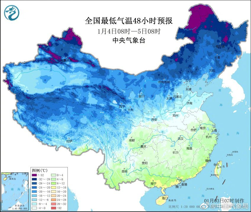 1月4日至6日,冷空气影响中东部地区,西北地区东部、华北、黄淮、江淮等地气温下降3~6℃,局地降温8℃左右;6日至8日关中,还将有较强冷空气来袭。