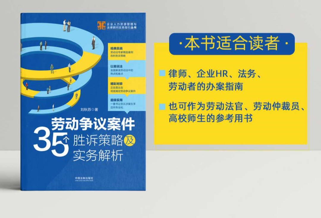 推荐新书:《劳动争议案件35个胜诉策略及实务解析》(作者刘秋苏,中国法制出版社2020年9月出版)一书是刘秋苏的鼎力之作,作者曾任法官十余年,现为执业律师、兼职劳动仲裁员、兼职法学教授,系江苏省南京市优秀劳动法业务律师。本书凝结了作者数年来的实务心血,通过近50个案例,就当前劳动法数个热点难点问题进行深入解析,书中既有法官、仲裁员的裁判思维,又有律师的办案技巧,还教当事人以胜诉策略,正反双向分析,被称为迈向劳动法专业化的教科书式著作。既可作为律师办案的枕头书,也可作为企业防范劳动风险、法官和仲裁员办理劳动争议案件的参考以及高校的实务教材、当事人的维权指南。