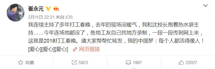 直到临近春节,2月11日深夜,崔永元的微博上悄无声息地多了一条内容。