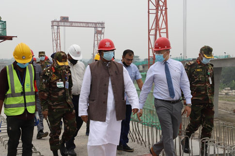 孟加拉国铁道部部长首先对所有参与项目建设的同志表示感谢,感谢所有参建人员在面对疫情、洪水等重重困难下仍然夜以继日的工作,提前完成工程节点,取得了又一个里程碑式的胜利。这充分说明了中国中铁是有担当、负责任的承包商,希望在后续的施工过程中,继续发扬“迎难而上,敢于拼博”优良作风,圆满完成后续工程。