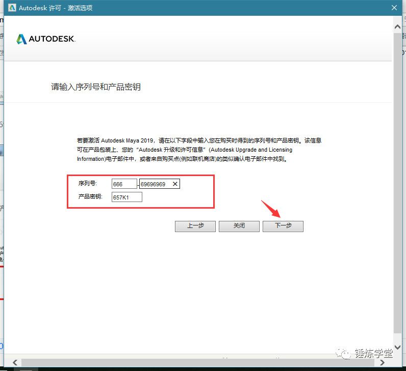 17、全选由Generate”生成的激活码进行复制,将激活码粘贴到我具有autodesk提供的激活码框中,单击“下一步”;