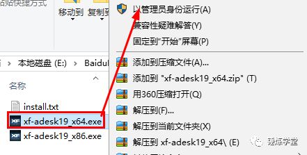 13、解压压缩包Autodesk2019注册机.Zip并打开,右击xf-adesk19_x64.exe(64位),以管理员身份运行;