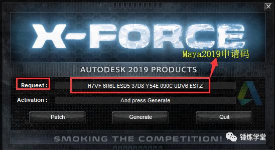 14、将复制好的Maya2019的申请码粘贴到“Request”那一栏;