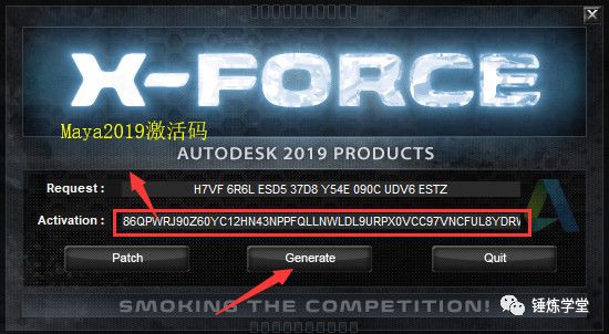 16、点击“Generate”,生成Maya 2019的激活码,点击Quit将软件退出;