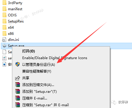2.解压后,右键以管理员身份运行Setup安装程序。
