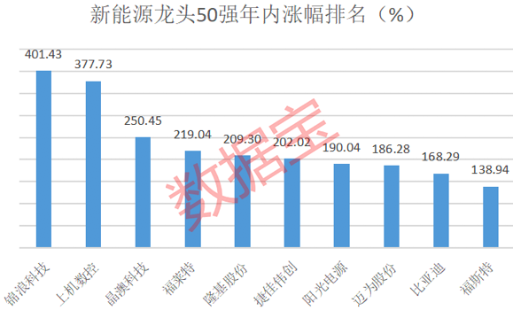 整体来看,榜单今年平均涨幅近91%。锦浪科技涨逾4倍居首,上机数控、晶澳科技、福莱特等13股股价翻倍。逆市下跌的股票仅4只,寒锐钴业跌超21%居首,华友钴业跌近9%位居次席。钴矿概念股今年深受锂电池无钴化传闻影响。风电概念股表现相对较差,日月股份涨逾85%,明阳智能涨近59%,均低于榜单平均水平。