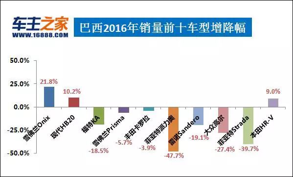 虽然巴西2016年车市不景气,不过上了前十榜单的车型变化并不是很大,雪佛兰Onix成功夺冠。