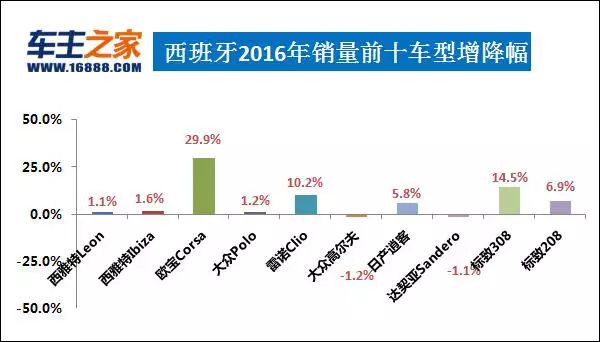 2016年全年西班牙新车销量为114.7万辆,同比上涨了10.9%。其中雷诺累计销量9.1万辆,欧宝以8.9万辆紧随其后,第三名为大众总计8.9万辆,前三名差距十分微小。