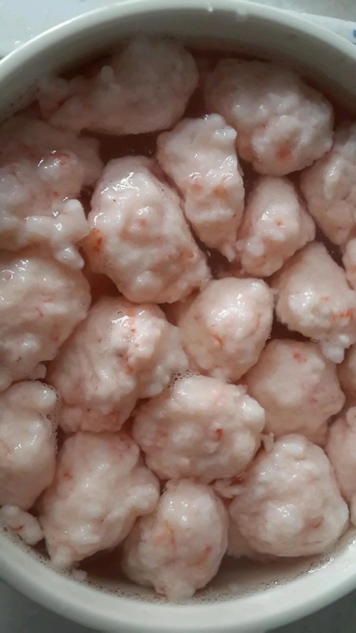 3、蒸的时间视丸子大小和火力来调整,因为虾肉易熟,糯米也充分泡透了大虾酥糖,所以10-15分钟完全够了。