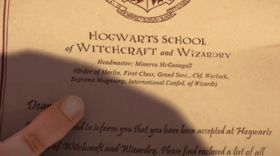 海格亲手将霍格沃兹的入学信交给哈利,并简单给他介绍了一下他的身份
