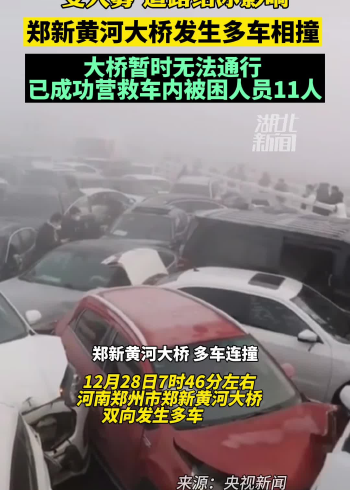 12月28日7时46分左右,河南郑州市郑新黄河大桥双向发生多车相撞。接警后,当地消防部门立即调派11辆消防车、66名消防救援人员赶赴现场处置。