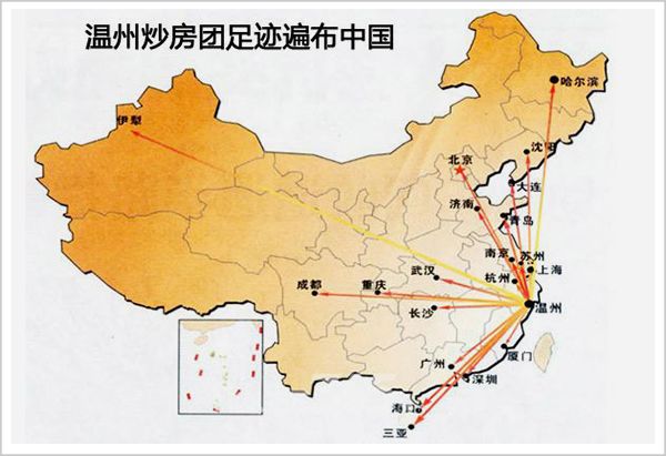 “温州炒房团”迅速“攻占”上海、杭州,接着开始向全国进军。他们足迹遍及各大中心与省会城市,后来连二线、三线城市也不放过。他们往往大批采购,连片购买,不为居住温州炒房团,只为收租或转手套利,俨然成为操纵楼市的资本大鳄。