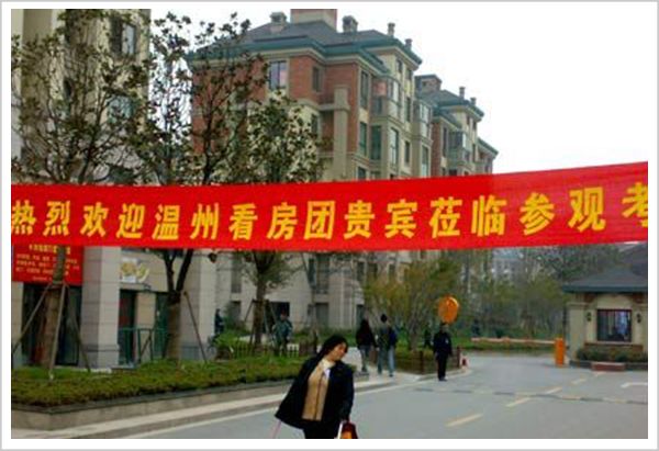 许多楼盘开盘前,竟赫然打出“欢迎温州看房团”的横幅,让本地人神经紧张。殊不知,这时的“温州炒房团”大多是“李鬼”,他们其实是靠表演来哄抬房价的。