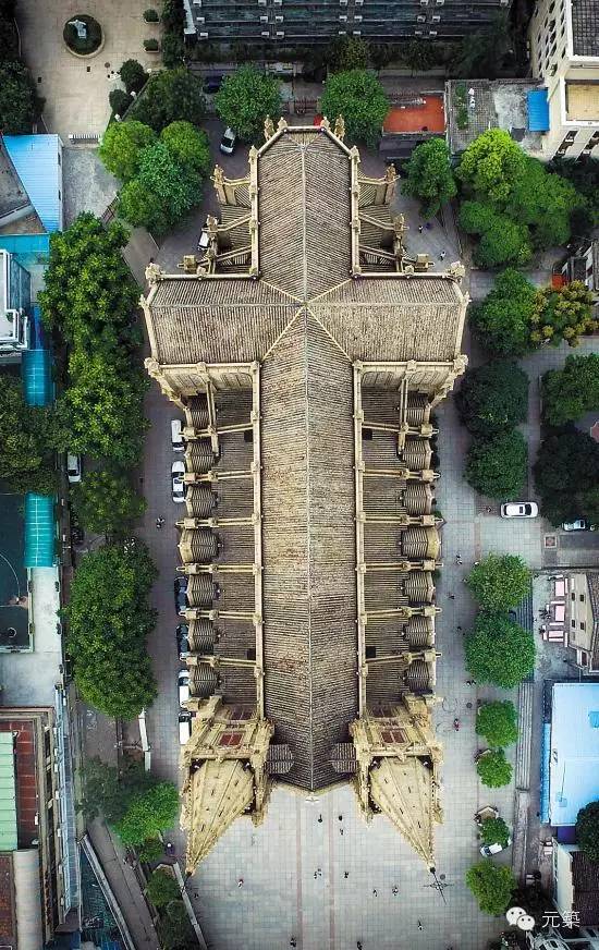 从上俯瞰,石室圣心大教堂就是一个十字架。平视是不能察觉的广州教堂,这可能就是上帝的角度吧。