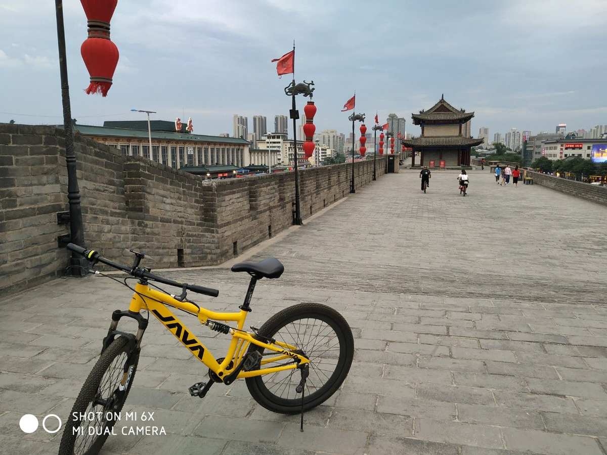 第二站古城墙,从碑林直接骑车十分钟到城墙南门永宁门,推荐大家五六点钟来,刚好能赶上落日。小编当时是从永宁门进景区,好看的拍照位置基本都集中在这里。可以在城墙上租个自行车或者坐电瓶车转一圈,双人自行车90元3个小时,三个小时起租西安名吃,电瓶车是80元全程。不过小编还是要偷偷告诉大家,这个季节西安的城墙上太热了,不太推荐大家骑车,这天儿站着不动都一身汗,大太阳底下在这儿骑自行车大可不必。