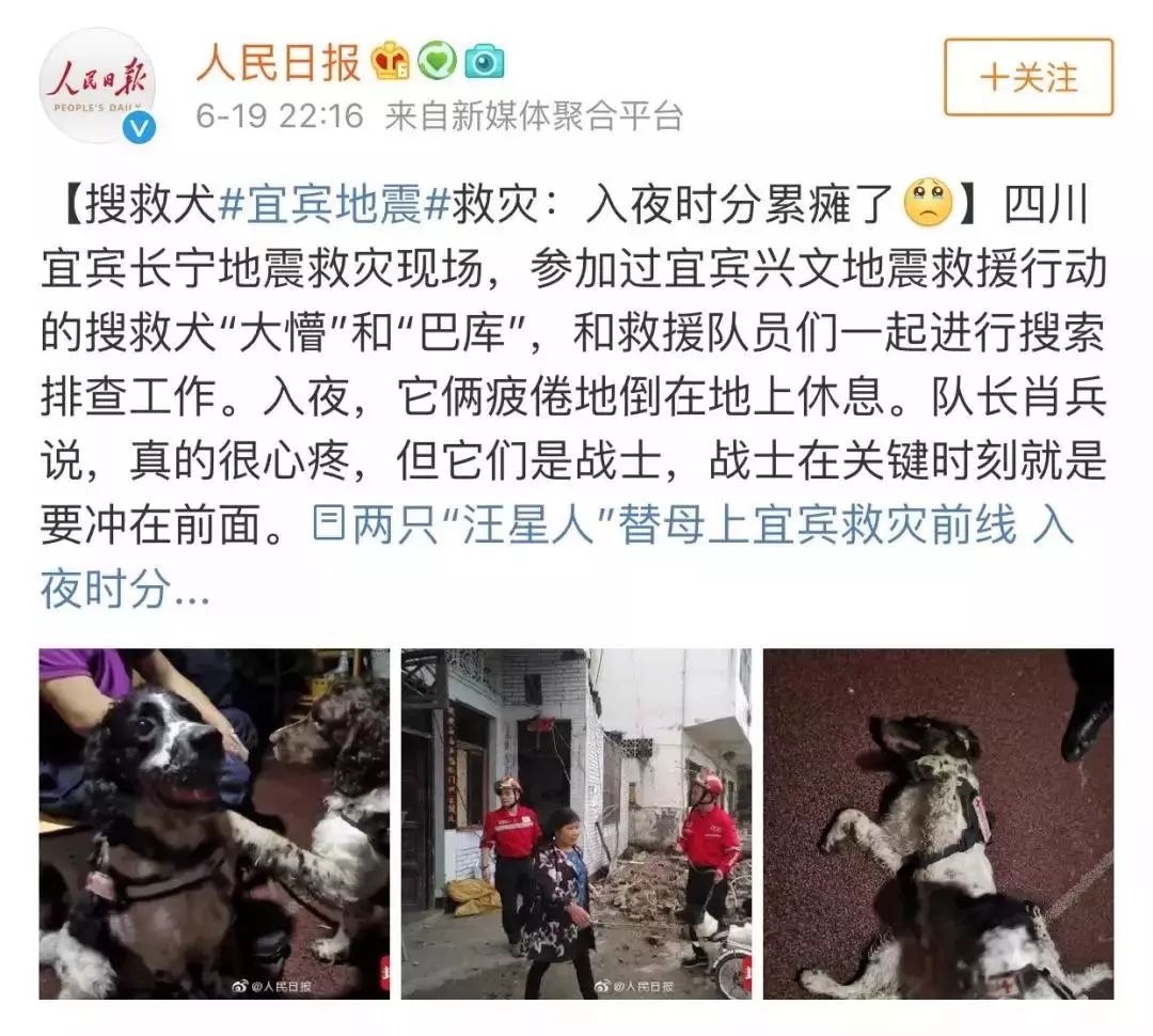 宜宾地震的搜救犬为了我们人类累得瘫了过去,而人类却还在今天庆祝(?)着这个日子。
