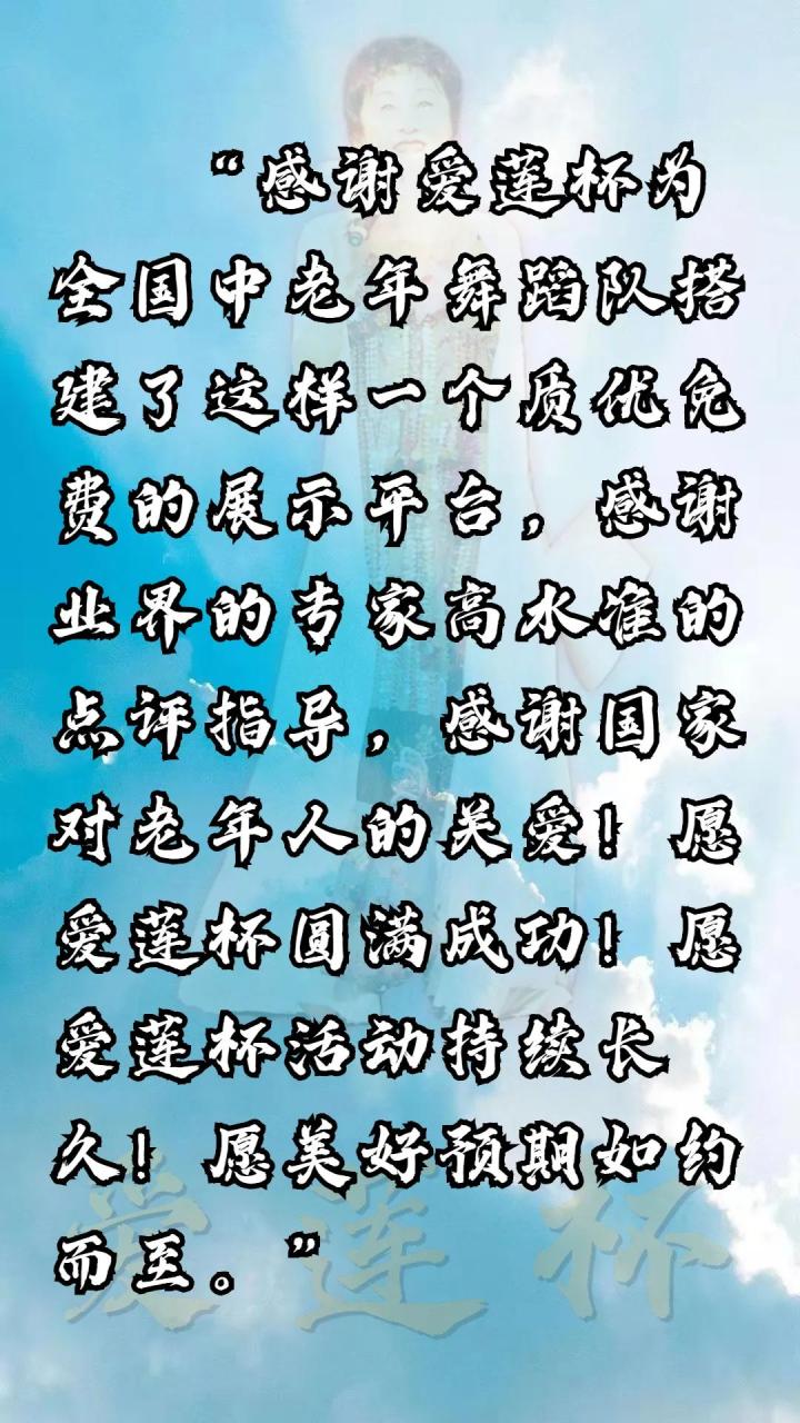 这就是爱莲老师创办爱莲杯全国中老年文艺汇演的初衷!”