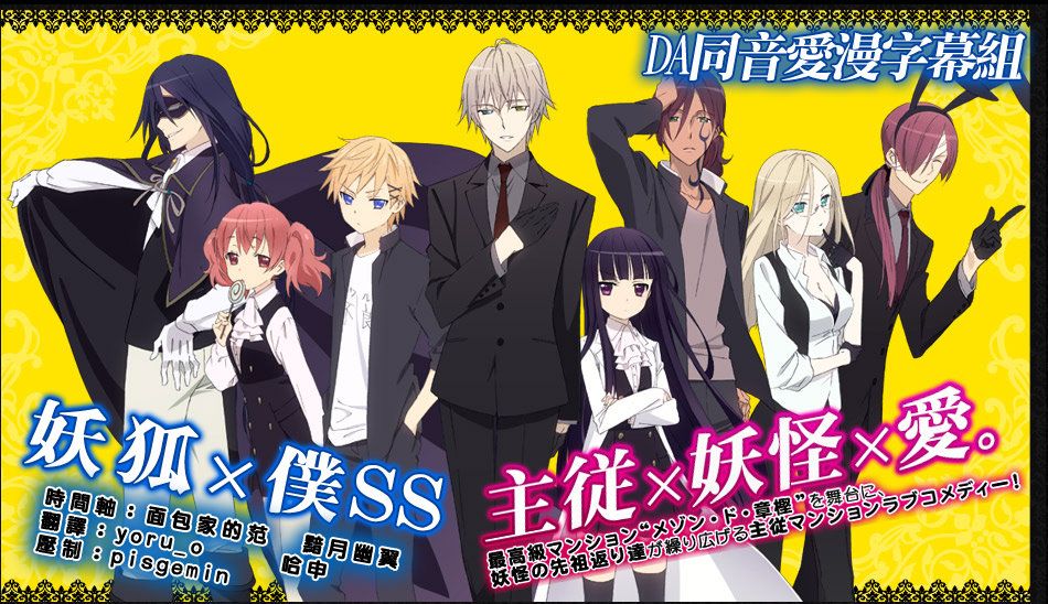 电视动画《妖狐×仆SS》改编自日本漫画家藤原可可亚原作的同名漫画。在这个世界中,除了人类和妖怪外还存在着另一个物种——人类和妖怪结合产生的返祖妖怪。由于其不纯正的血统,返祖妖怪经常会被同类驱逐甚至追杀。因此,一间专门为返祖妖怪提供庇护的“妖馆”应运而生。在妖馆中狐妖x仆ss,每一个返祖妖怪都会配有一位被称为“SS”的护卫,白鬼院凛凛蝶和御狐神双炽的故事就由此开始。