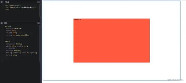 顾名思义,就是利用当前元素的 position: absolute; 和 margin: auto;
