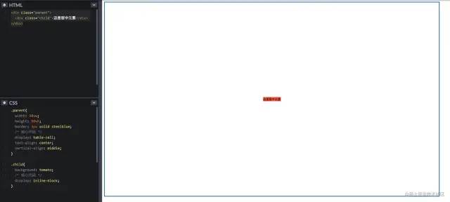 通过最经典的 table 元素来进行水平垂直居中,不过代码看起来会很冗余,不推荐使用;