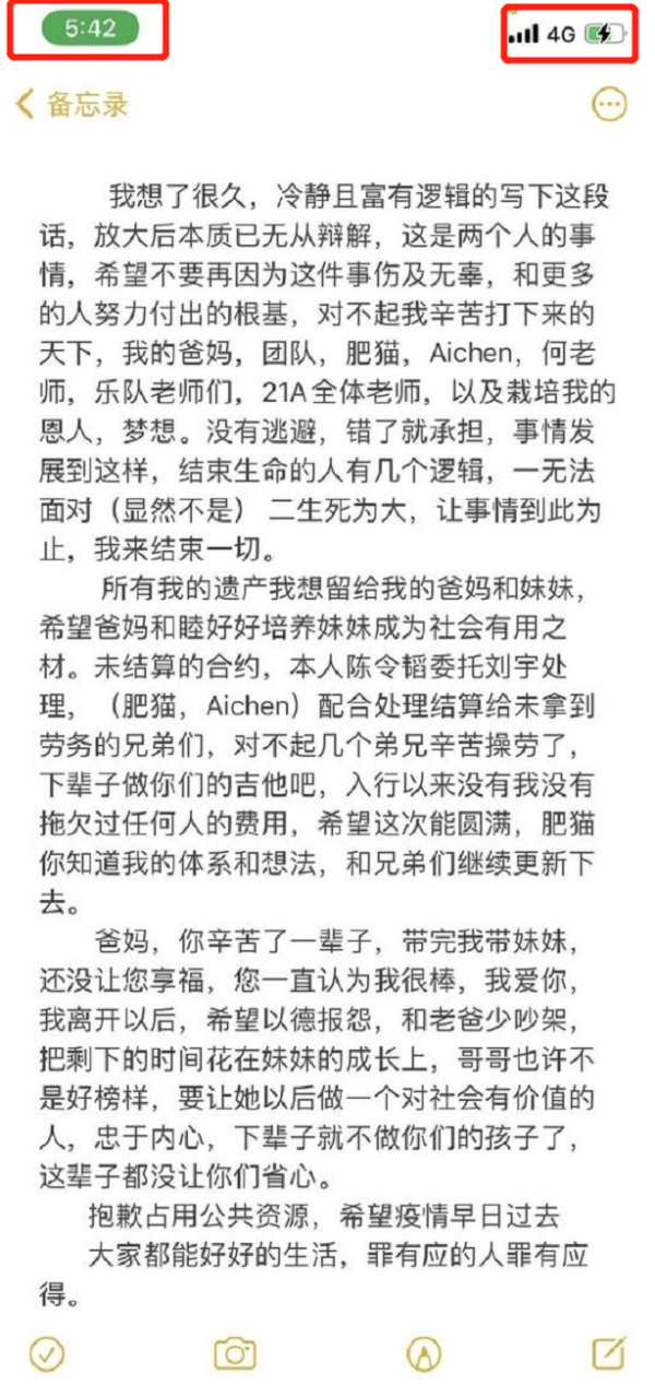 在陈令韬的前女友曝光聊天记录之后,陈令韬很快发了一篇长微博来回应此事,言语之间透露出想要轻生的想法,计划一个人承担这件事的后果,也间接的默认了此事。