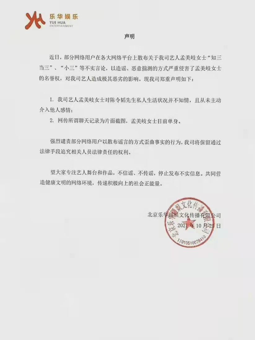 而作为事件的另一女主角孟美岐,在事情爆发之后,其所在的公司也做出了回应,否认了孟美岐介入他人感情之事,还称孟美岐目前是单身状态,曝光的截图很片面,但也间接承认了截图的真实性。