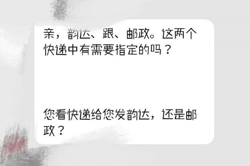 一瞬间脑瓜子开始嗡嗡的响,是选择慢得一批的邮政?还是选择不给配送的韵达?
