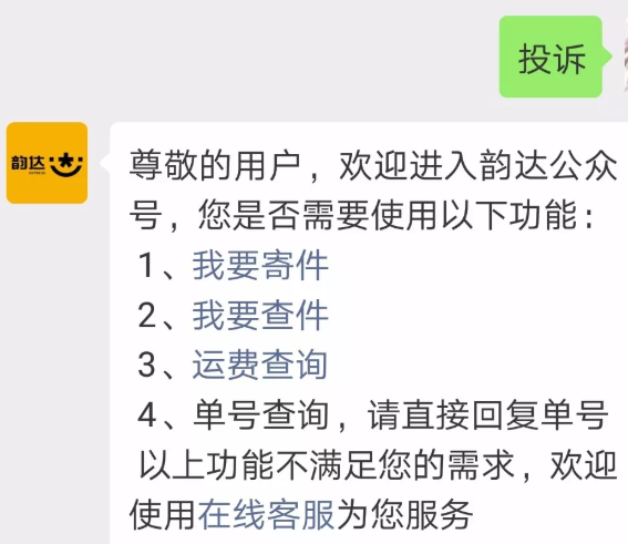 紧接着又下载了韵达的APP,居然没有投诉的页面。
