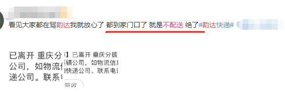 而韵达虽然以往给人的印象是速度快,但…耐不住人家现在腰板儿挺直了,都不给送快递了呀。