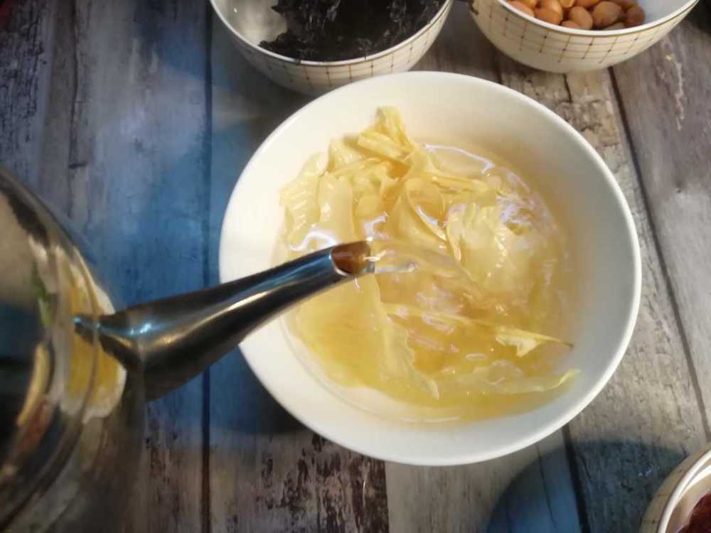 干鱼胶在吃之前就需要先提前浸泡一下,这样子做美食才能更加好吃。泡发干鱼胶可以把它放到清水里面浸泡,如果比较薄的话可以浸泡短一些的时间,大概要浸泡五小时到十个小时左右,因为鱼胶会有一些腥味以及油脂,所以泡好以后还需要飞水,在锅里面加一些生姜片,水烧开以后改成小火放入鱼胶,然后再焯半分钟捞出来清洗干净,放到清水里面浸泡备用就可以了。干鱼胶一般来说清炖是非常推荐的食用方法,因为这样吃鱼胶所含有的营养价值基本不会有流失,能够让身体补充到非常充足的营养物质,对身体是非常好的。