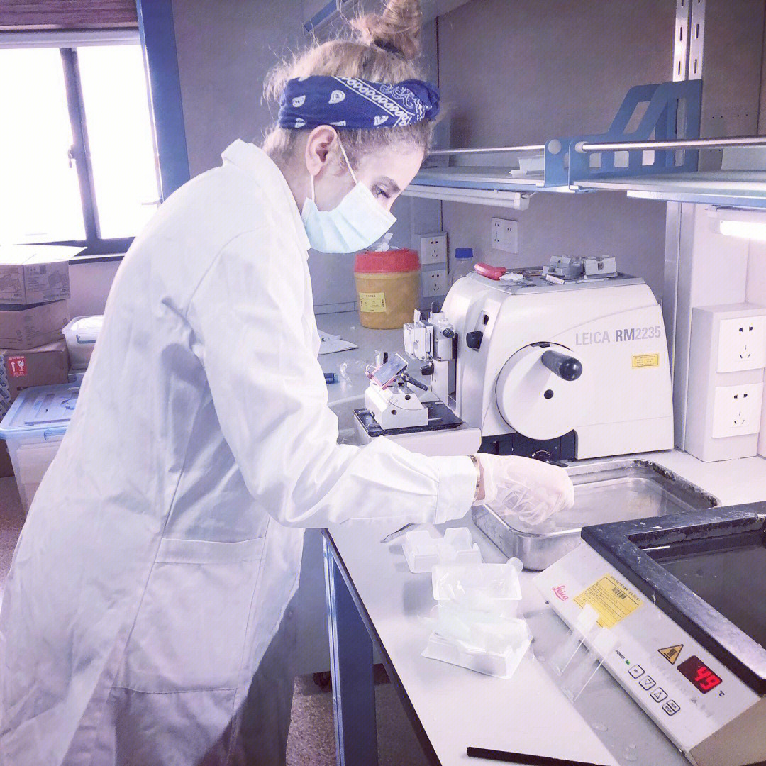 登高方知天地阔,凌空始觉海浪平。翟婷从小就有出国学习的心愿,董静也一直鼓励她做好各种准备。2018年6月,翟婷获得一个去美国耶鲁大学公共卫生学院参加暑期科研项目的机会。由于翟婷英语很棒,加上在216实验室有过系统的科研历练,她在耶鲁大学期间,能够得心应手地承担起课题研究工作。在做一种特殊的PCR实验时,需要设计特别的引物,一位刚到耶鲁的博士生跑来向她请教,甚至实验室主任、耶鲁大学终身教授瓦斯纳罗·瓦斯里斯(vasiliou vasilis)先生也来找她一起研究。8月底,翟婷要走的时候,瓦斯里斯对她说,“Ting, you enlightened my whole summer(婷,你点亮了我的整个夏天)。”