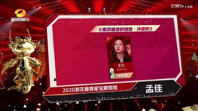 孟佳获得2020网友最喜欢的宝藏姐姐。