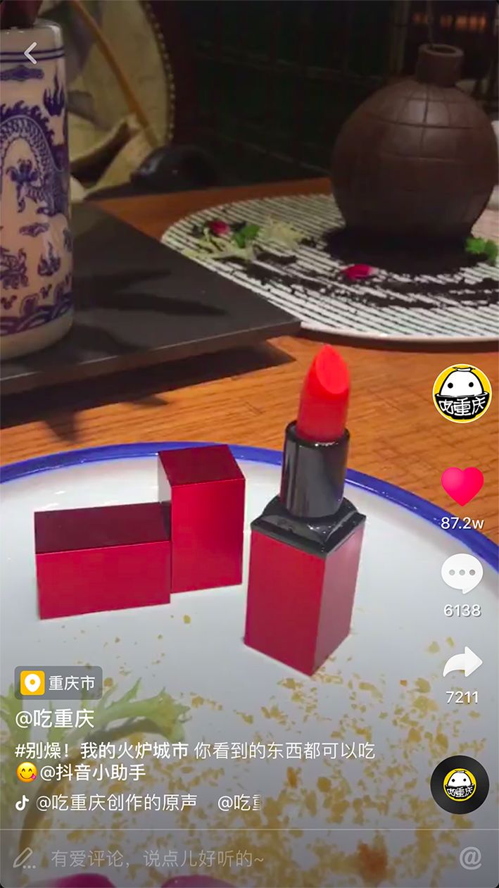 在这里光彩夺目的口红不再是口红,可以做成一道菜,不是用来涂嘴巴火鸡面,而是拿来吃的。