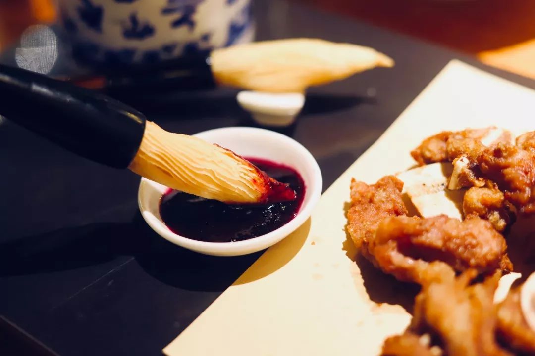 以造型逼真的毛笔来衬托油炸小排,这独特的创意我给满分,实在是“妙笔生辉”啊!