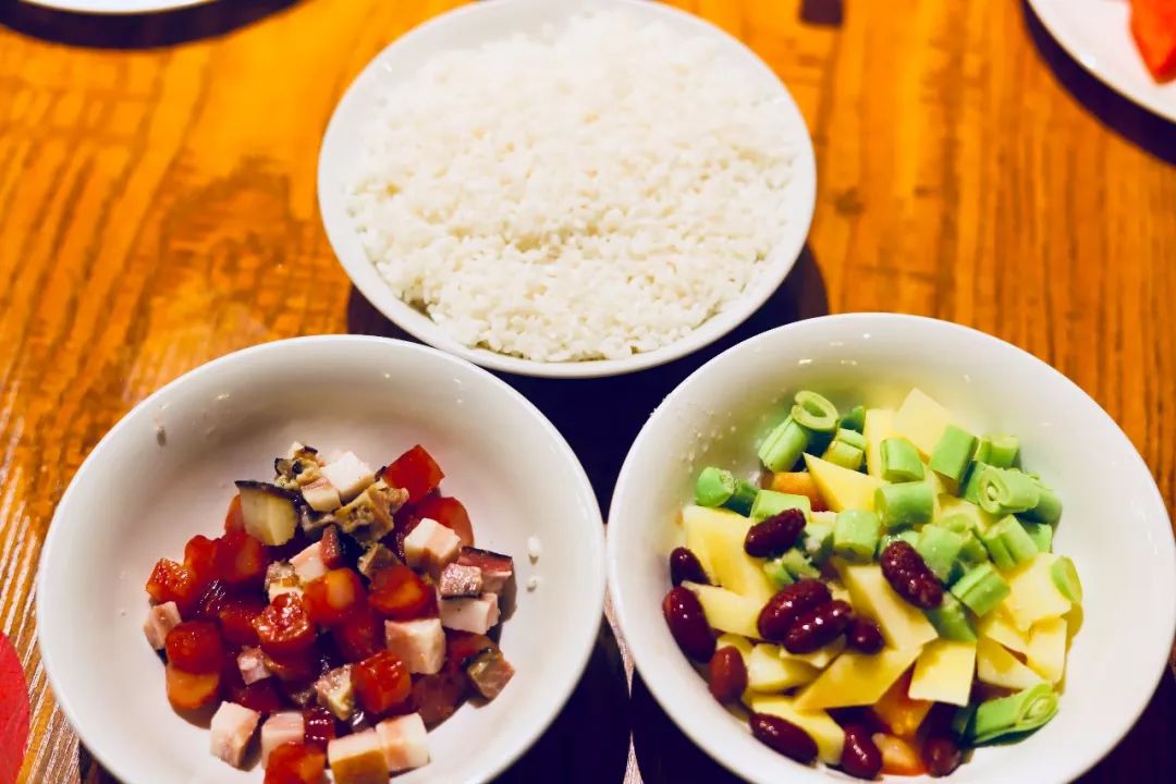 不知道这个饭的灵感是不是来源于抖音上爆火的焖饭,做法跟抖音的焖饭教程如出一辙,里面加了红豆、土豆、腊肉、甜肠……菜品还是很丰富。