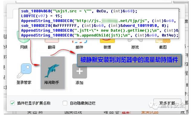 [4]被静默安装到浏览器中的插件模块,通过JS注入劫持网页