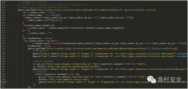 通过注入JS脚本来劫持用户网页浏览的技术优点也很明显,一方面注入的云端JS脚本比较灵活,可以随时在云端控制修改劫持行为,另一方面对于普通用户来说非常隐蔽,难以察觉。被注入用户网页的JS脚本的对网页浏览中大部分的推广流量都进行了劫持,如下图: