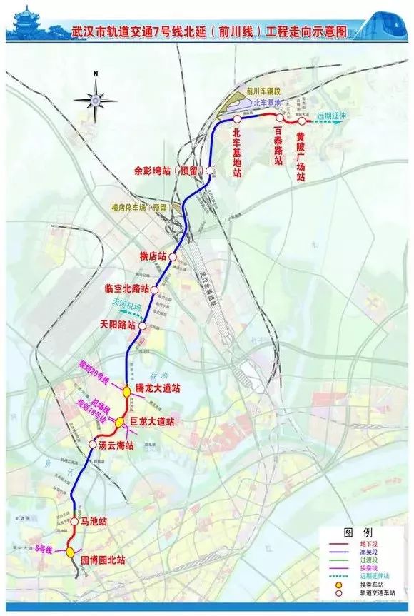 前川线起于黄陂前川,止于东方马城站,全长36.2km,设站11座,建成后将于7号线贯通运营,目前前川线建设已被纳入武汉轨道交通第四期规划方案。