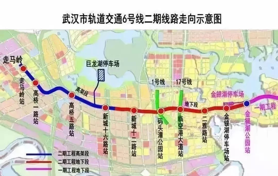 6号线二期工程从金银湖引出,经金山大道止于走马岭站。预计2020年通车后,可在码头潭公园与1号线换乘,在临空港大道换乘17号线。