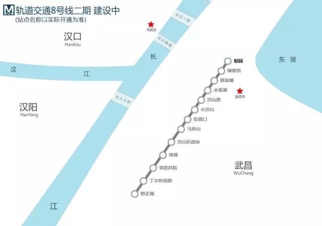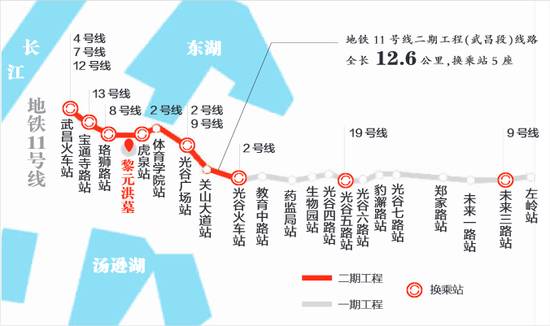 站点:梨园、博物馆、蔡家嘴、水果湖、洪山路、小洪山、街道口、雄楚大街、洪山区政府、南湖、省农科院、丁字桥南路、野芷湖