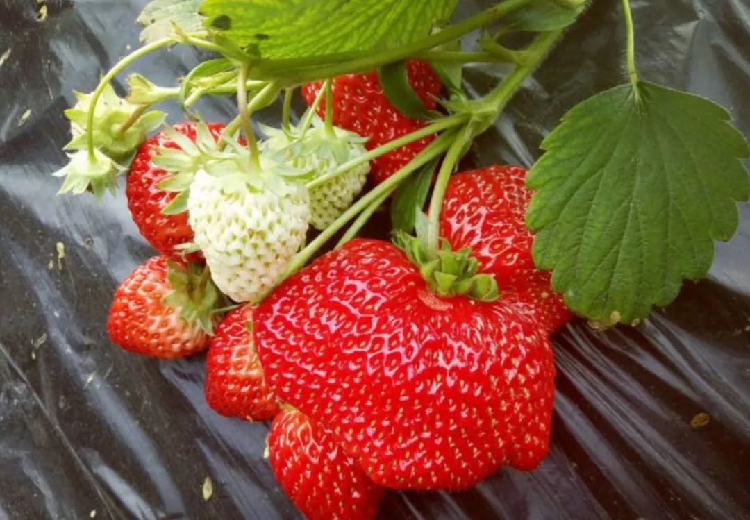 ①看外观→太大的和长得奇形怪状的畸形草莓不要摘