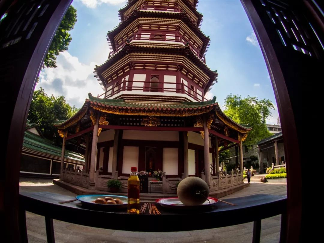 一进门就能看到一座9层高的古塔—花塔,登上去能俯瞰羊城全貌。不过现在不对外开放了。大雄宝殿、供奉禅宗第六代祖师慧能铜像的六祖堂、弥勒殿……都很值得逛逛。许多人都来这里祈福许愿,超灵。