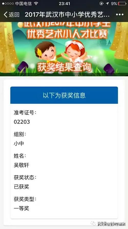 吴敬轩 荣获 武汉市艺术小人才“一等奖”