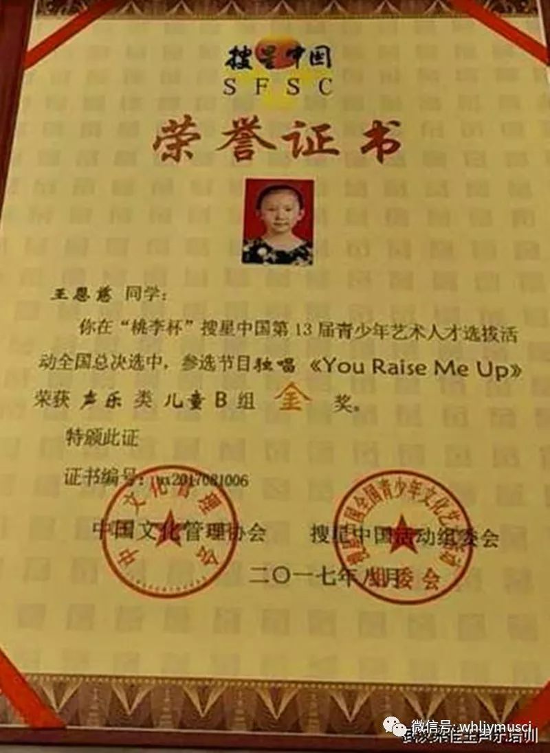 王铭城、王恩慈、上海复旦大学第十三届青少年艺术人才选拔活动“金奖”