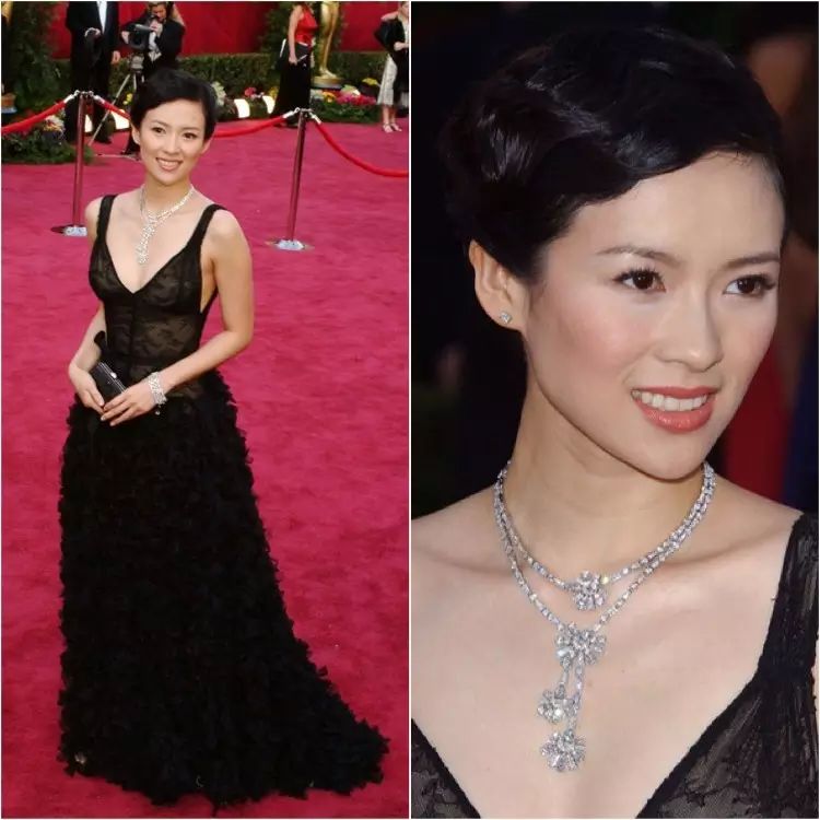 06年来奥斯卡时更是拿足了国际女星的范儿,选择的是Armani的裙子,十年前就戴Choker走得real前面。