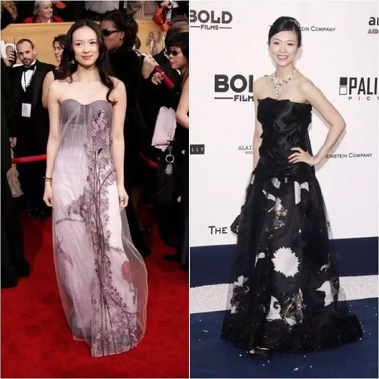 十年前章子怡在金球奖红毯的Giorgio Armani苹果绿礼服更被官方列为历史十佳造型。
