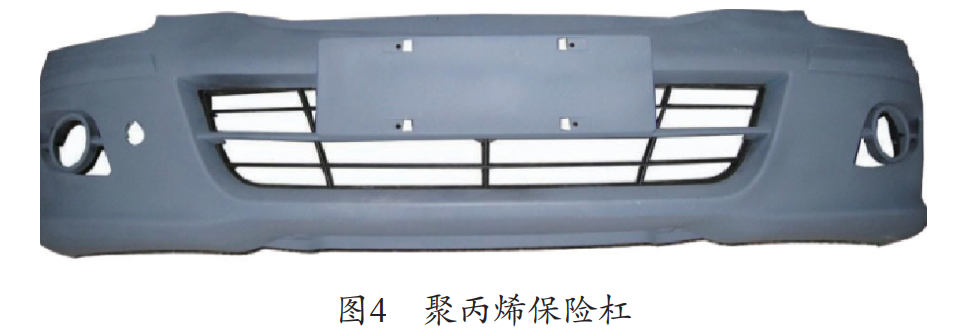 保险杠作为汽车的重要组成部分,承担着吸收和缓和外界冲击力的作用,保障驾驶员的自身安全。在进行保险杠加工时,常选取聚丙烯或改性聚丙烯材料作为保险杠的材质,如图4所示。