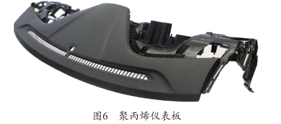 由于聚丙烯优良的刚性和出色的韧性,通过挤出和注塑成型制作的聚丙烯仪表板,既可以保证仪表板在使用过程中不出现变形,又可以增加气囊有限爆破的难度,保证驾乘人员的安全,如图6所示。