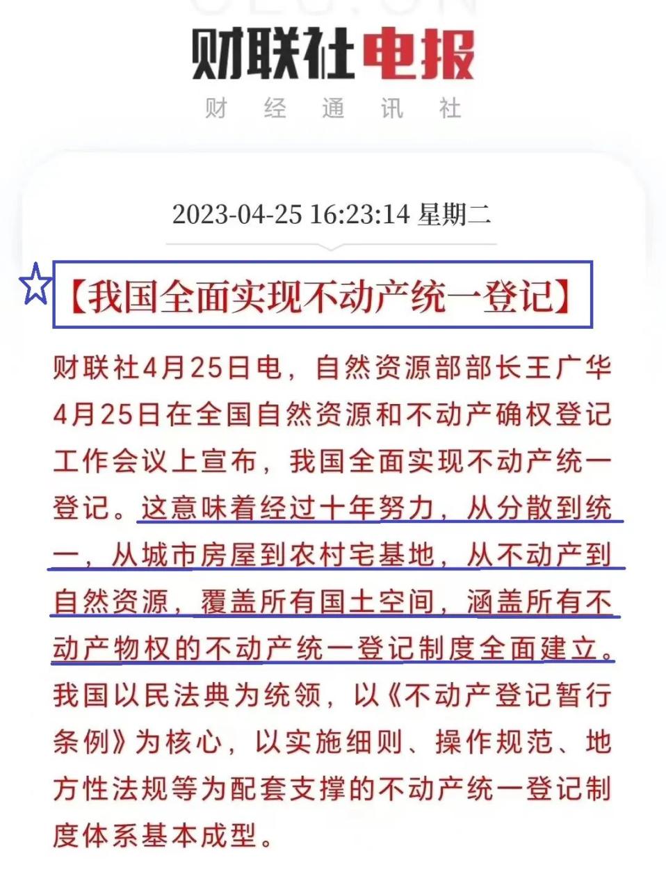 据新华社消息香港二手房,自然资源部部长王广华4月25日在全国自然资源和不动产确权登记工作会议上宣布,我国全面实现不动产统一登记。